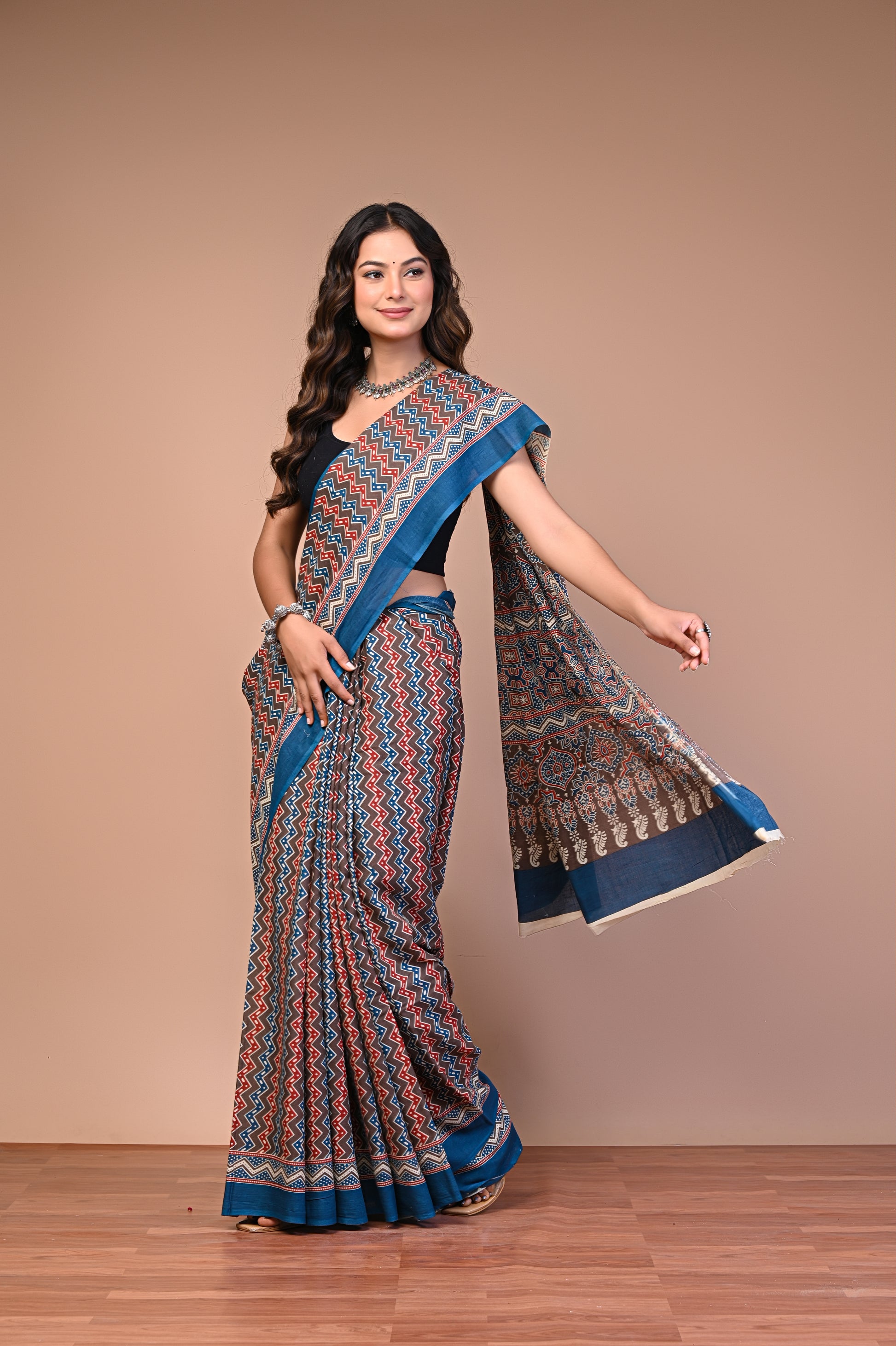 Hand Block Print Cotton Mulmul Saree – Lightweight & Breathable Everyday Wear