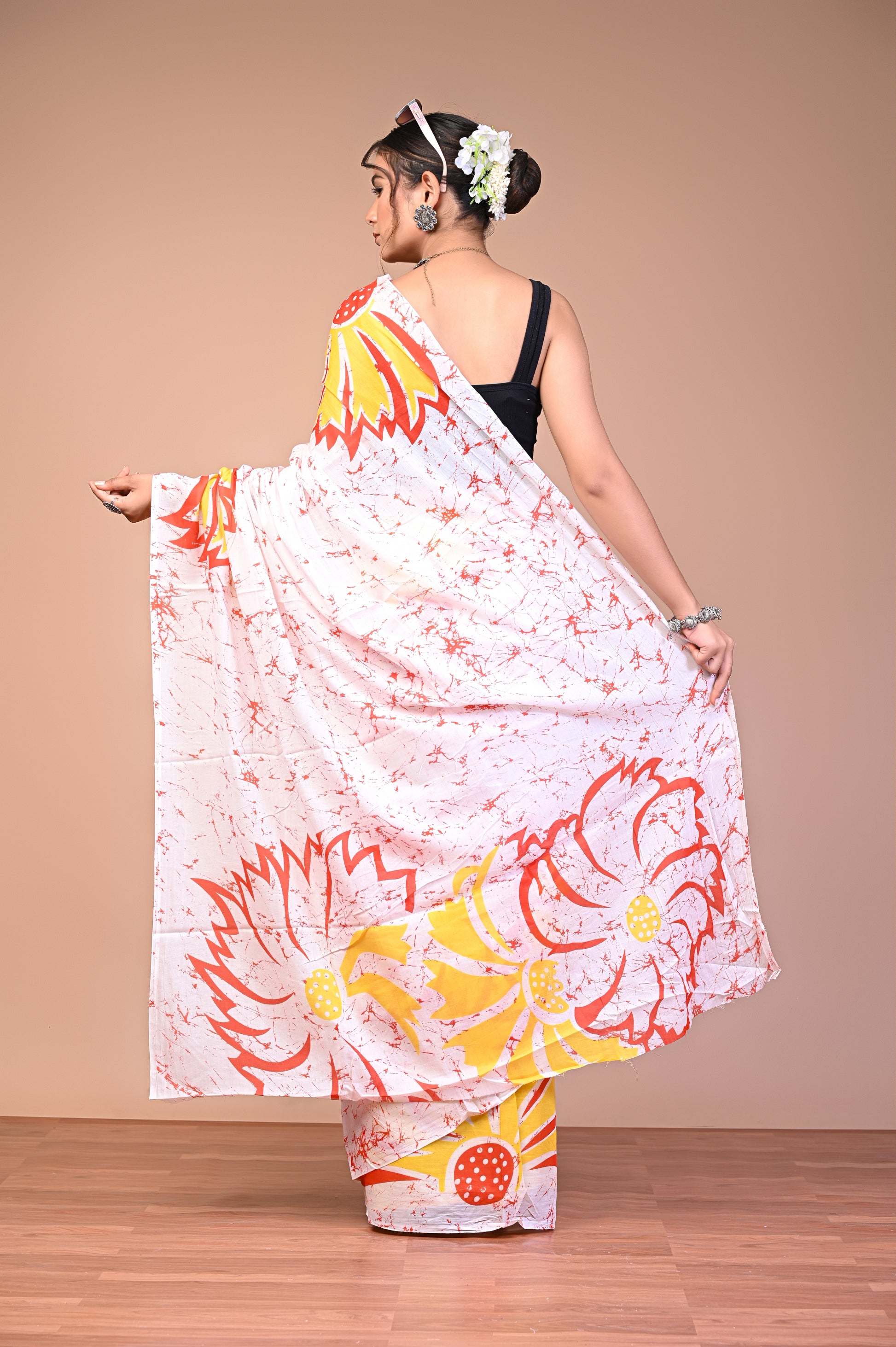 Hand Block Print Cotton Mulmul Saree – Lightweight & Breathable Everyday Wear
