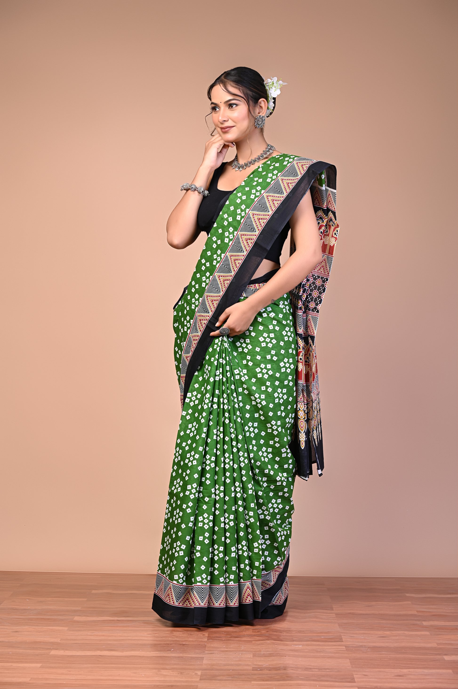 Hand Block Print Cotton Mulmul Saree – Lightweight & Breathable Everyday Wear