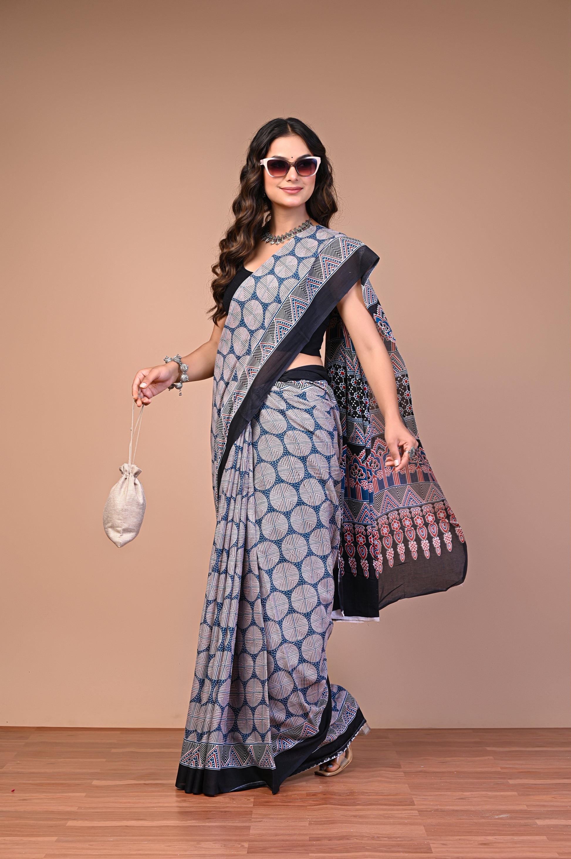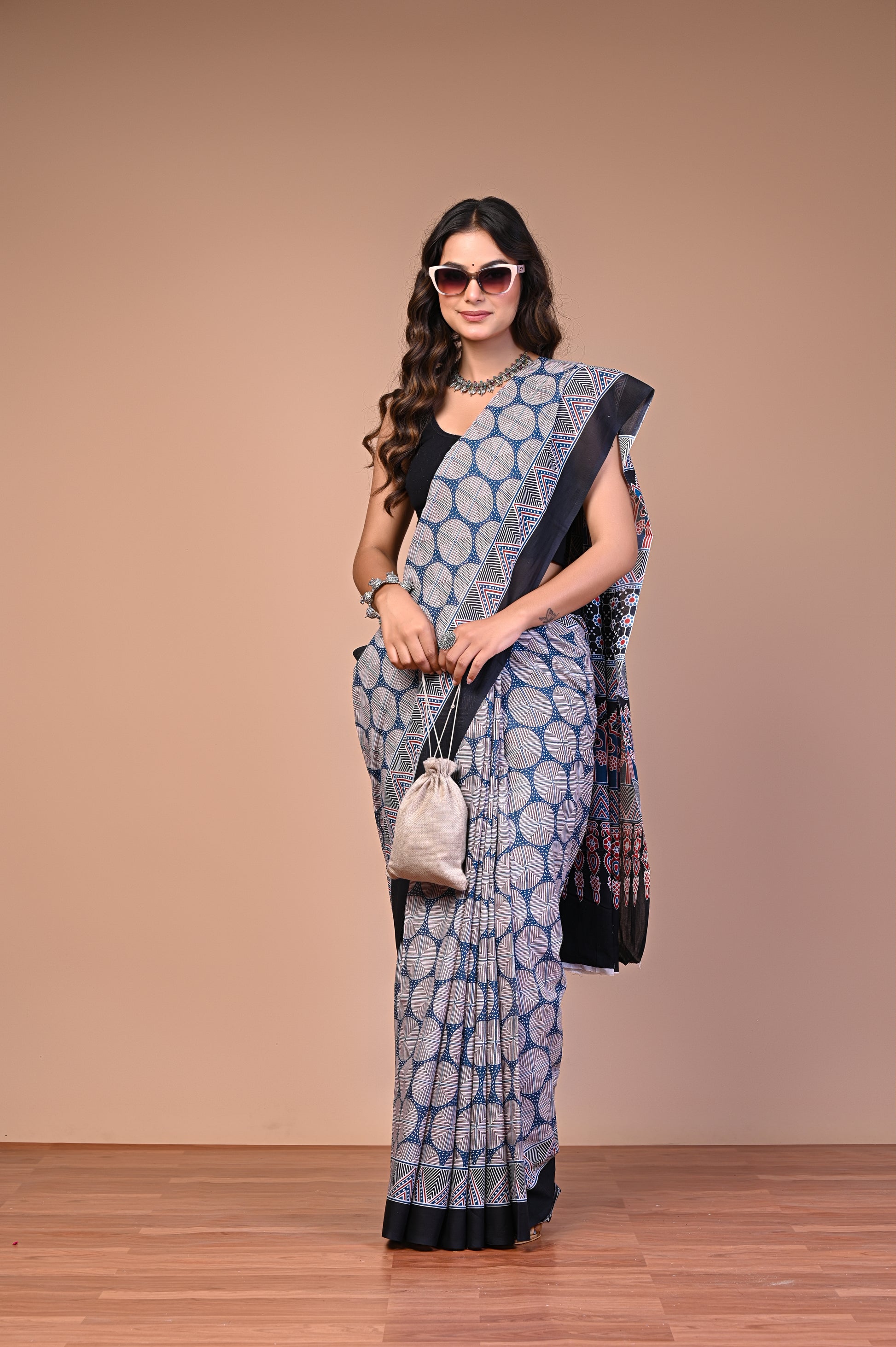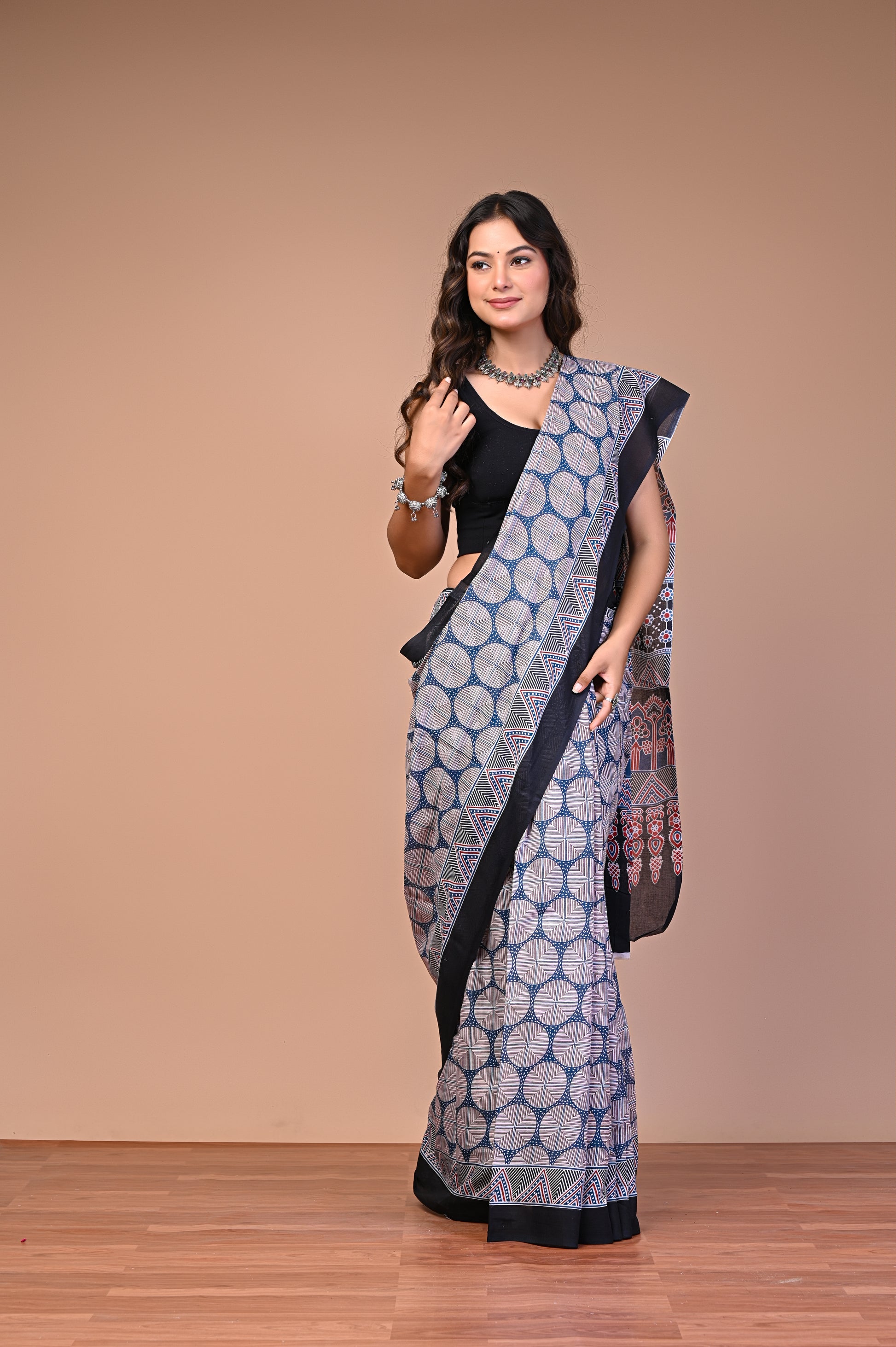 Hand Block Print Cotton Mulmul Saree – Soft, Lightweight & Breathable